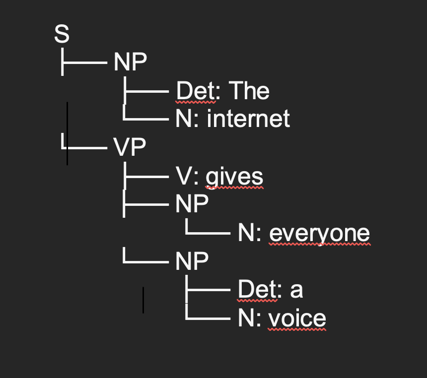 Next, the representation for the sentence “The internet gives everyone a voice” is the following: